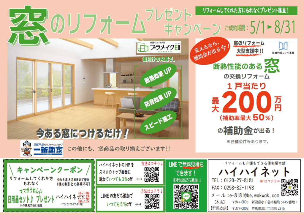 大型補助金とプレゼントがゲットできる今が窓リフォームのチャンスです