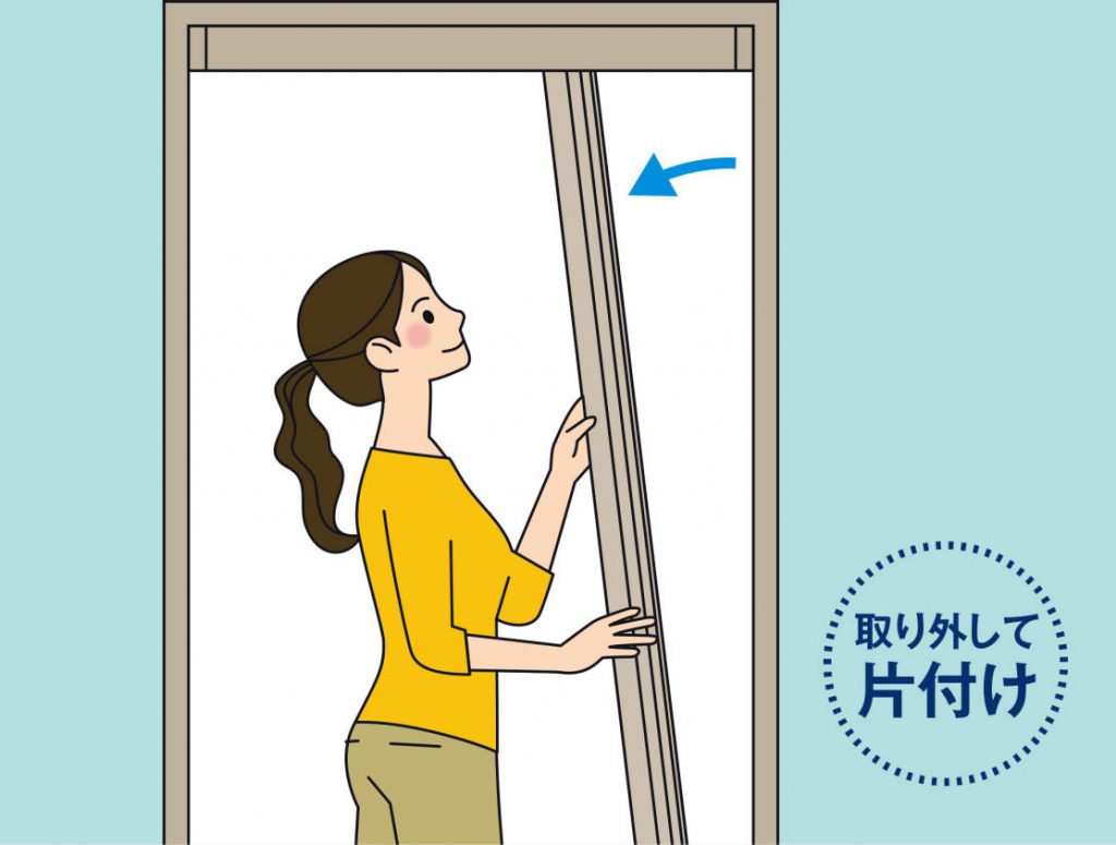 網戸の必要がない季節には網戸本体を取りはずして物置に収納