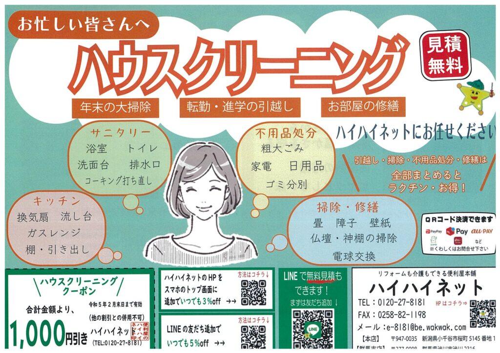 ハウスクリーニングはハイハイネットがお手伝いいたします!