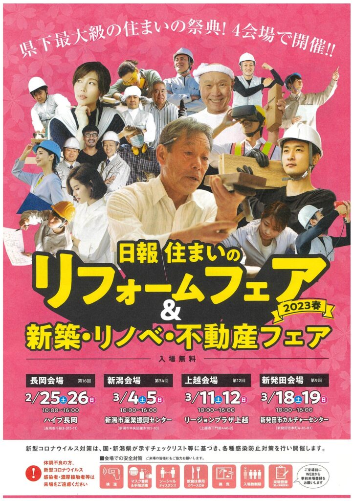 新潟県内にお住まいの方、お家の情報をたくさんゲットできるリフォームフェアが開催されます。