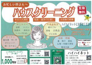 忙しい皆さま、家事ラクしてください! あっという間に年末!年末の大掃除の時期です。ハウスクリーニングはハイハイネットがお手伝いいたします! シーズンになりますと大変混みあいます。ご予定が決まりましたらお早めにご連絡くださ […]