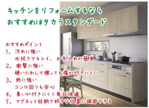 キッチンをリフォームするならおススメはタカラスタンダード!!タカラのホーローはとにかく優れモノです!①汚れに強く、水拭きだけで汚れが落ちる、お手入れがカンタン♪②衝撃にも強く硬いたわしで擦っても傷が付きにくい!③熱にも強 […]