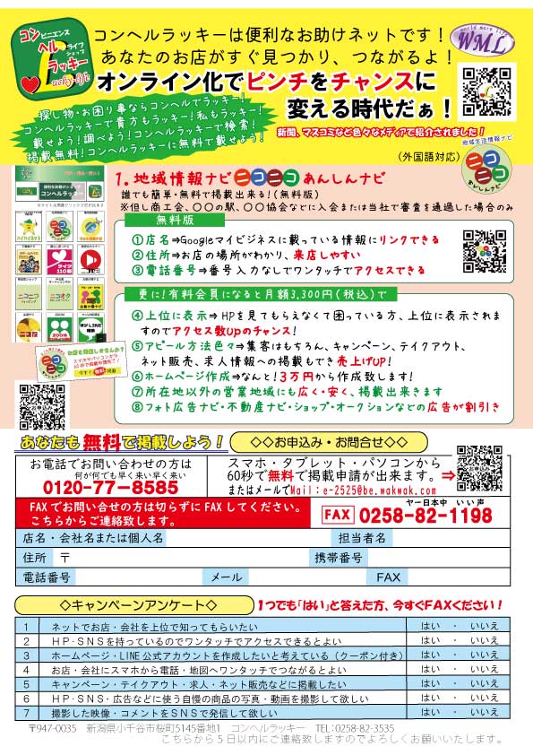 お得な情報や求人を無料でHPに掲載出来る。有料になると安く・広く新聞折込チラシでPR出来る。